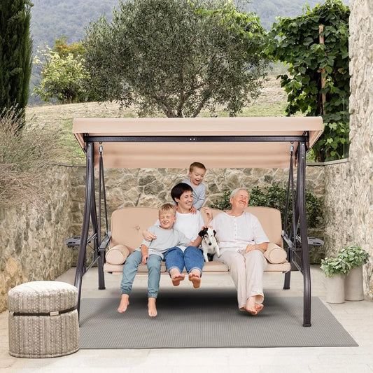 Swing Bench with 2 Side Cup Holder, Backrest w/ Cushion, 2 Pillows