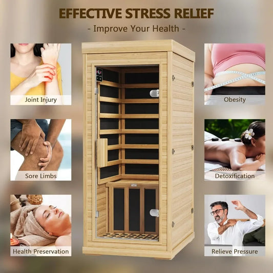 Hemlock Wooden Indoor Dry Sauna, Low EMFHeaters Panels, LCD Control Panel