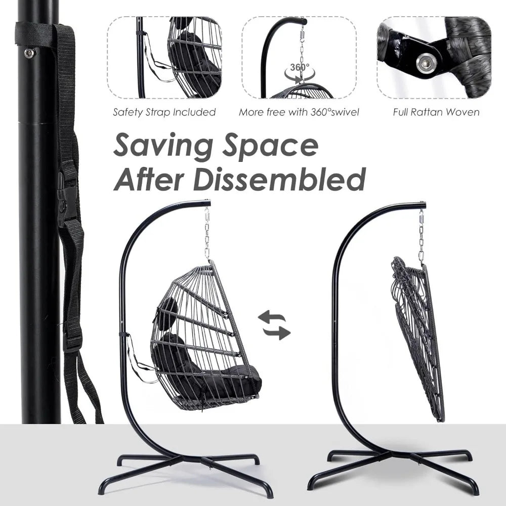 Egg Chair Wicker Hanging Swing Basket with Resistant Cushions
