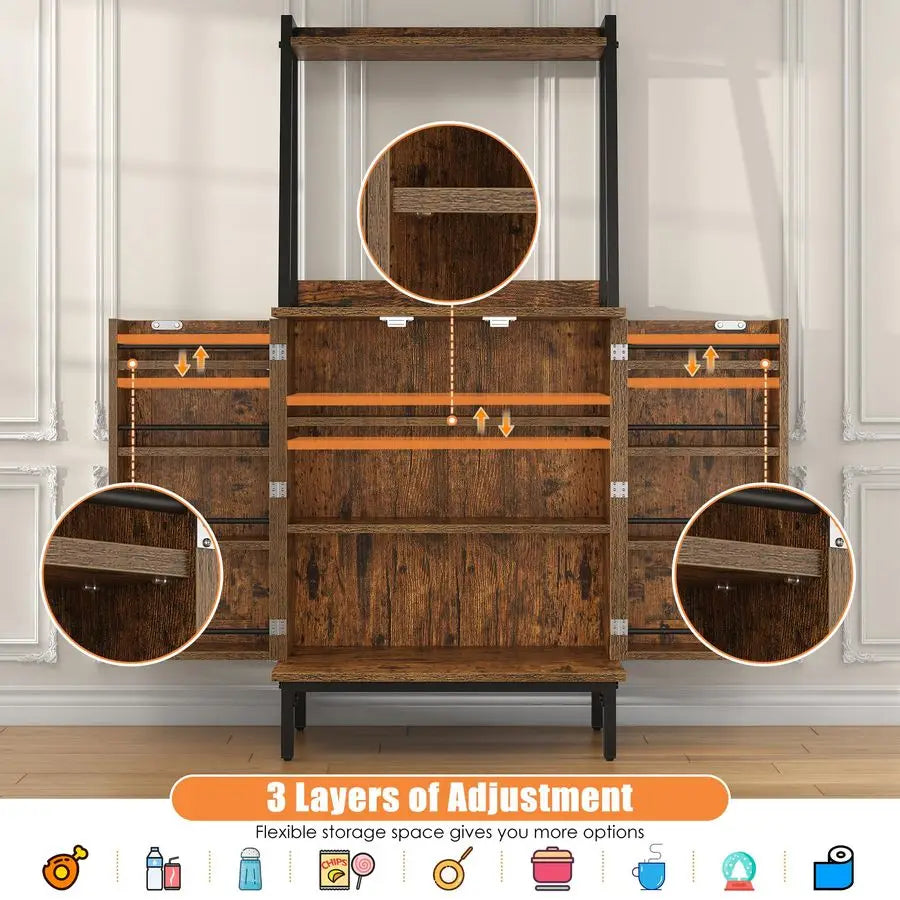 Pantry Storage Cabinet with, Storage Shelves, Modern Hutch with Microwave Stand, Adjustable Shelf