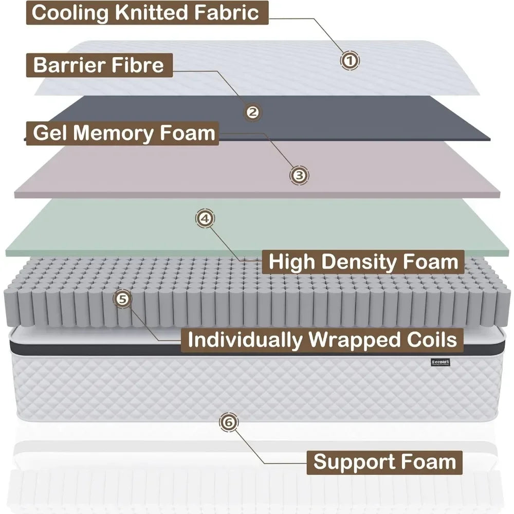 Queen size Mattress, 12 Inch, Gel Memory Foam, Pocket Spring , Motion Isolation, Medium