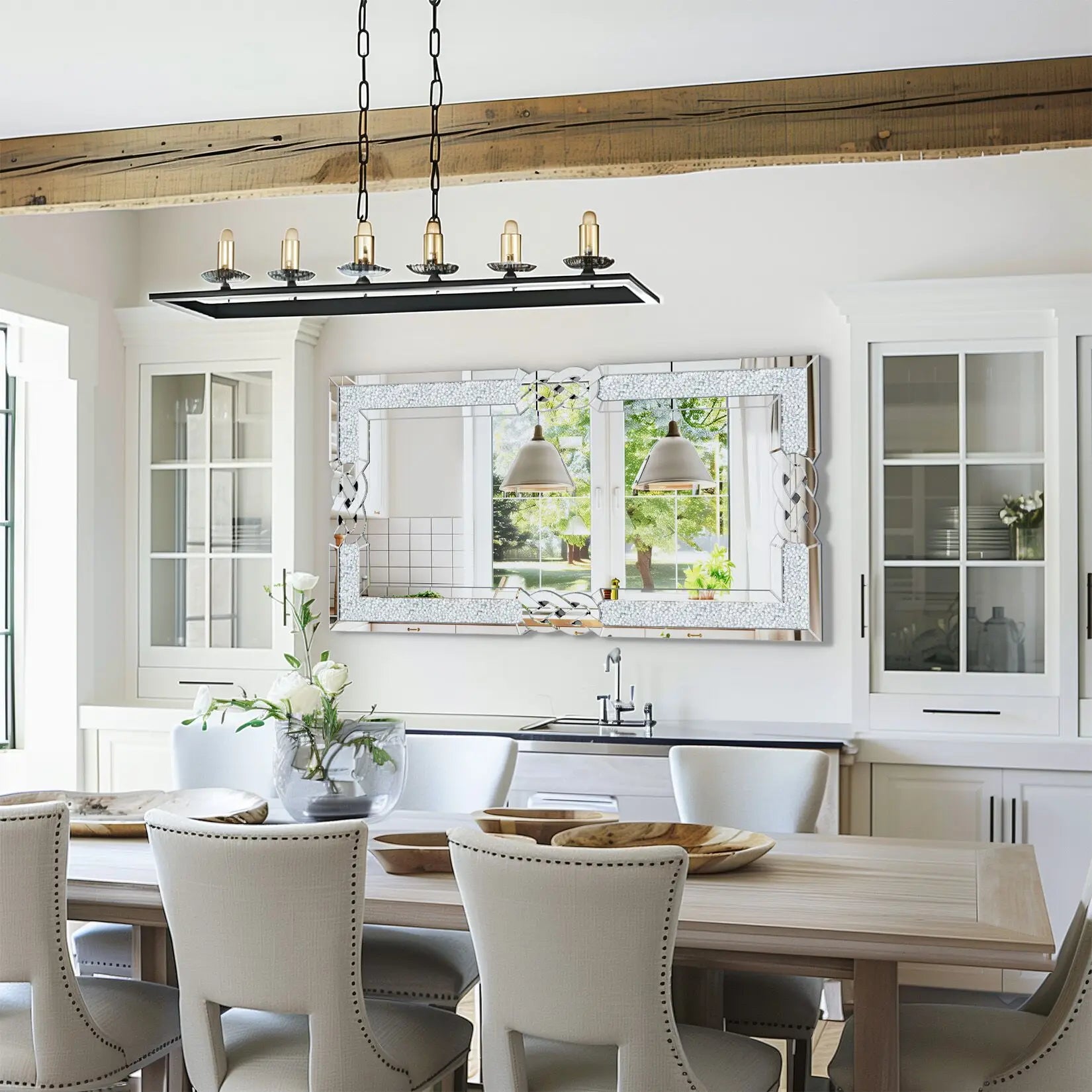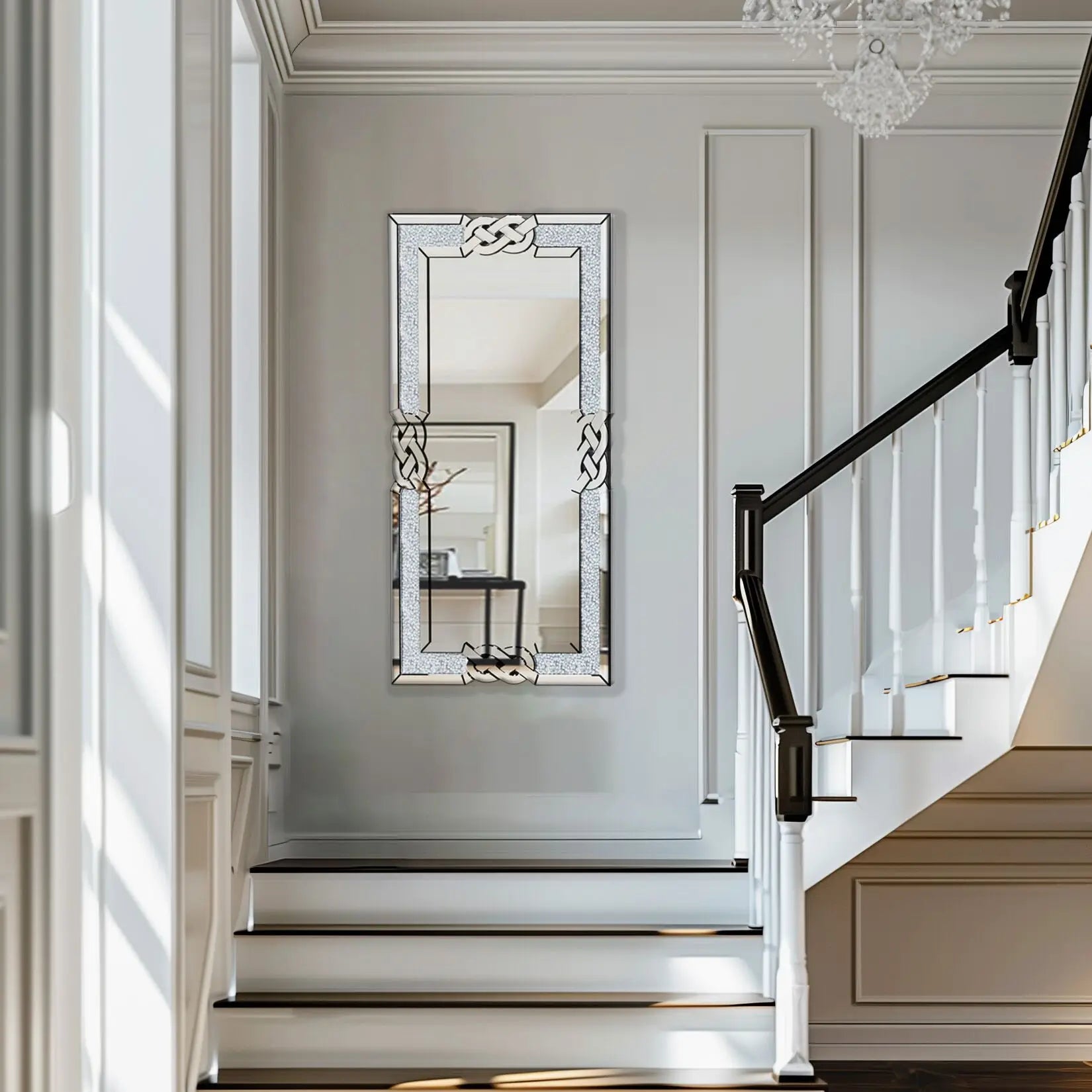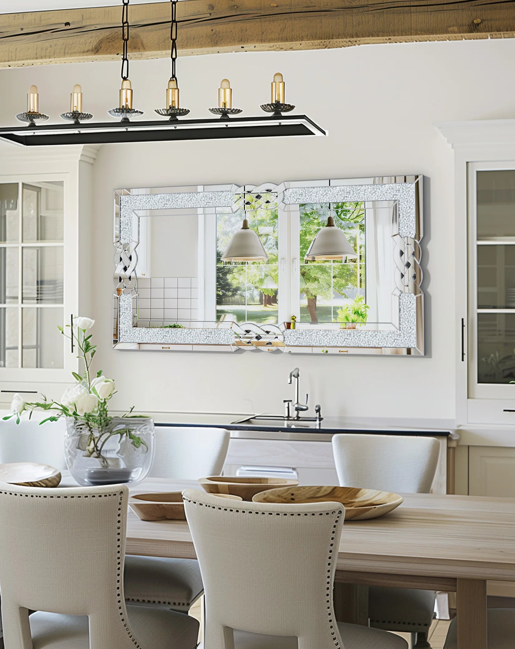 Rectangular Wall Mirror Luxury Silver , Crystal Crush Diamond Decor